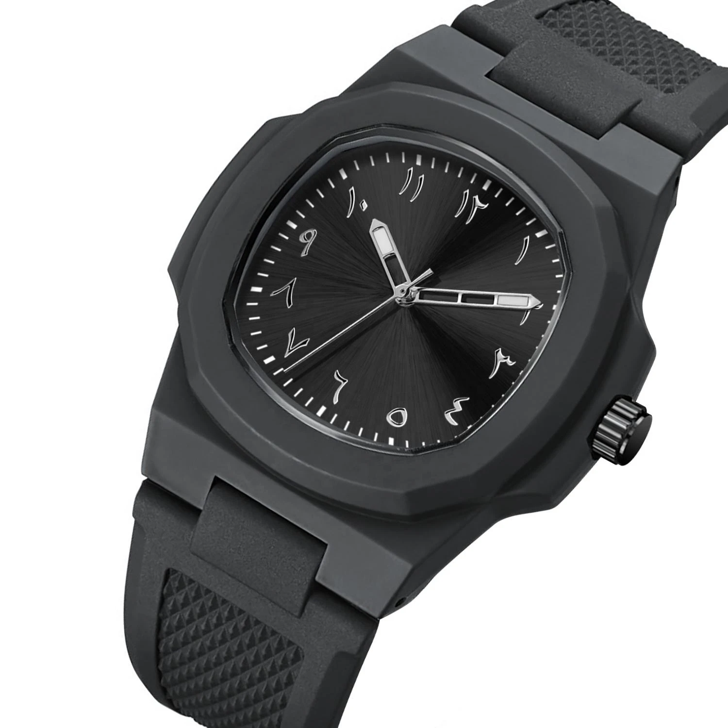 The Custom Logo Arabic Dial Square Wristwatch is a modern, durable, and stylish timepiece designed for men who value both functionality and elegance. With its square polycarbonate case, luminous Arabic numerals, and comfortable silicone strap, this watch is built to withstand daily wear while making a bold style statement.