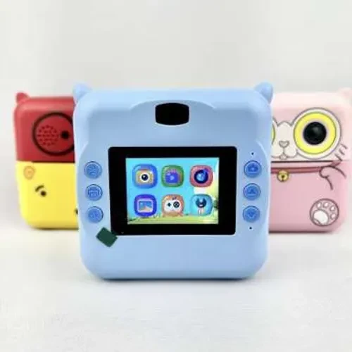 With this Kids Print Camera, kids can take pictures and print out the pictures right away. The camera's cute cartoon design and easy-to-use method are perfect for kids.
