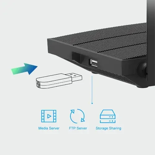 | USB Support | 1× USB 2.0 Port | Supported Partition Formats: | NTFS, exFAT, HFS+, FAT32 | Supported Functions: | FTP Server | Media Server | Samba Server | ||