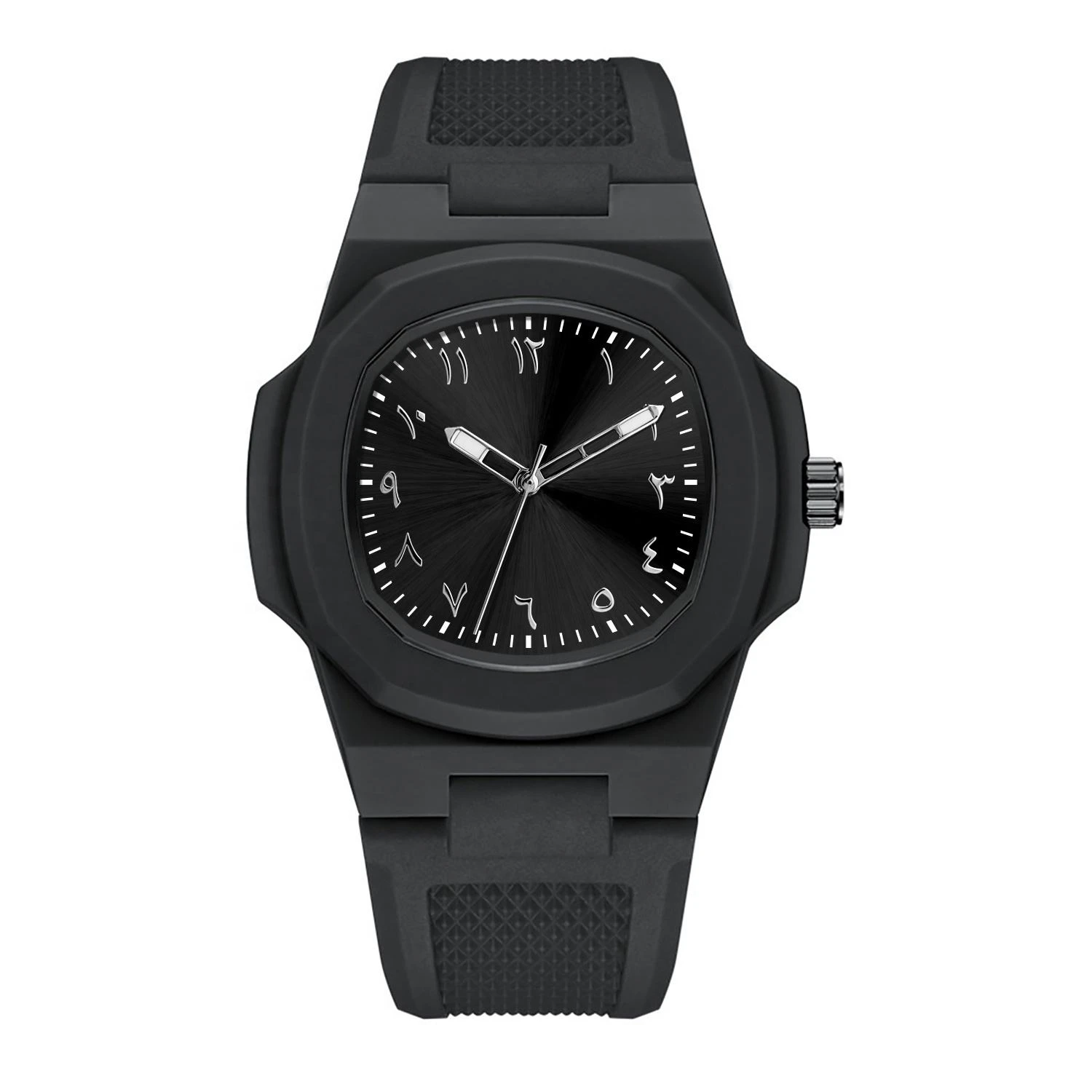 The Custom Logo Arabic Dial Square Wristwatch is a modern, durable, and stylish timepiece designed for men who value both functionality and elegance. With its square polycarbonate case, luminous Arabic numerals, and comfortable silicone strap, this watch is built to withstand daily wear while making a bold style statement.